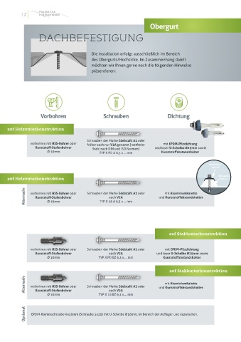 vorbohren mit HSS-Bohrer oder Schrauben der Marke Edelstahl A2 oder mit EPDM-Pilzdichtung