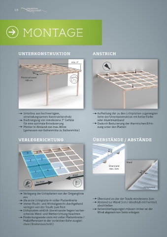Pfetten in Abstand von max. 80 cm zung unter den Platten