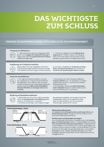 1. Bitte beachten Sie, dass die Verlegung von Well- 2. Für Dächer empfehlen wir eine Mindest-Dach-